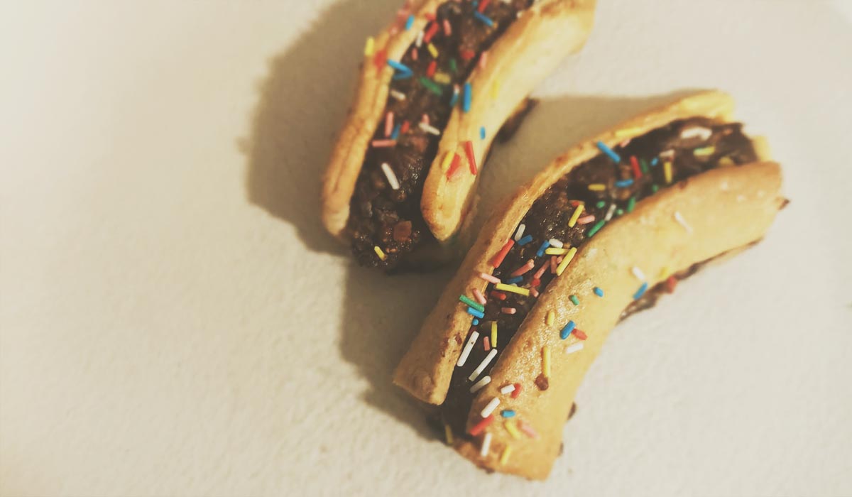 L’esplosione dei fichi tritati, il cioccolato spezzettato grossolanamente fuso in piccole venature, le mandorle tritate, il tocco del vino rosso, l’aroma d’arancia che sembrava raccontare una storia antica, i canditi, le noci… Tutto racchiuso in una frolla che sapeva di casa e di mani pazienti. Era un biscotto, eppure mi sembrava un rito, un gesto d’amore travasato in ogni morso.